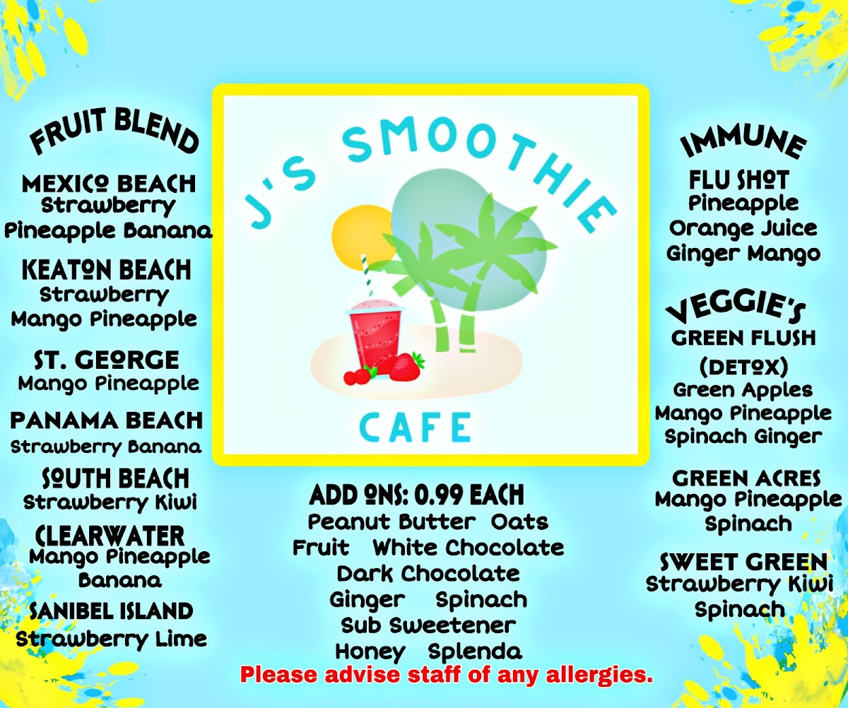 Welcome to J's Smoothie Cafe, a delightful oasis located at 178 E Base St, Madison, FL. This cozy cafe offers a vibrant menu of smoothies crafted with fresh, high-quality ingredients. Customers rave about the unbeatable flavors, especially the refreshing kiwi strawberry and the popular green detox smoothie.